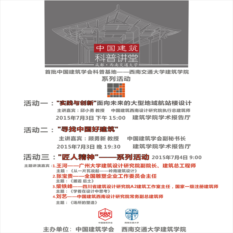 作为全国首批“中国建筑学会科普教育基地”,充分依托学术优势、人才优势、先进的实验设备等资源优势,创建沟通交流、实践创新的优质平台,通过整合校内外科学教育优质资源,履行学校人才培养义务,服务社会发展和城市建设,提升学校科研水平及社会影响力。本次讲堂汇聚了国内建筑界建筑大师、规划大师、政府代表、知名建筑媒体等各领域知名人士。为广大师生带来最前沿的学科动态和专业知识,促进建筑文明进步。