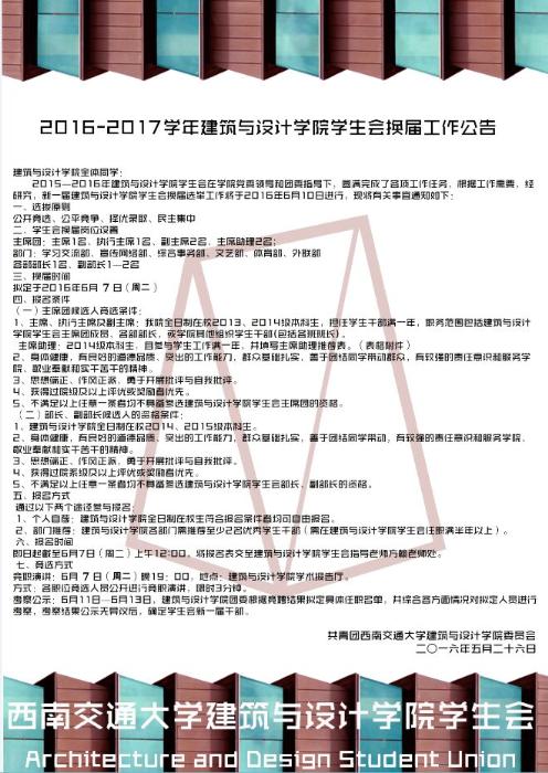 点击量:2587 日期:2016/05/26 作者:建筑与设计学院分团委 编辑: