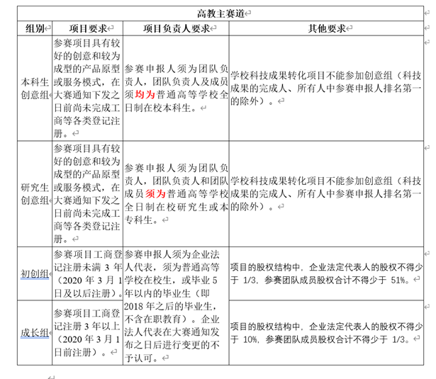 (二)参赛项目只能选择一个符合要求的赛道报名参赛,根据参赛团队负责人的学籍或学历确定参赛团队所代表的参赛学校,且代表的参赛学校具有唯一性。参赛团队须在报名系统中将项目所涉及的材料按时如实填写提交。已获本大赛往届总决赛各赛道金奖和银奖的项目,不可报名参加本届大赛。