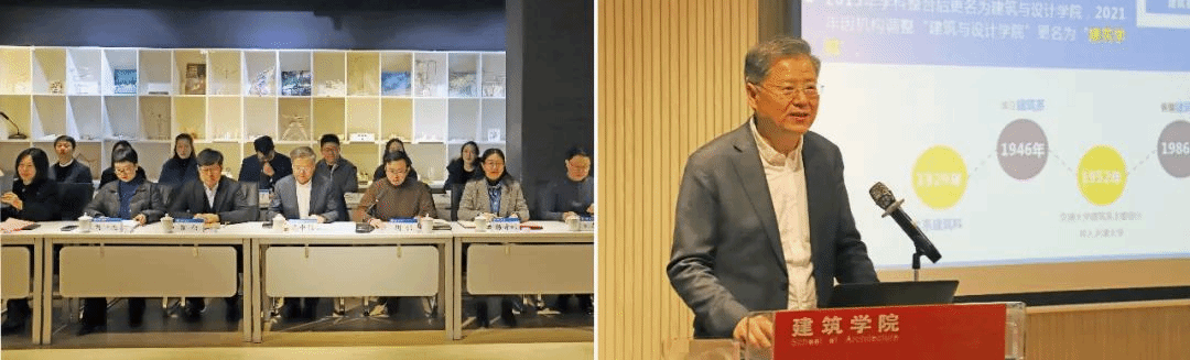 办学历史悠久、文化底蕴深厚,在人才培养、专业建设、学科发展方面体系完备,以及在学生培养和青年人才储备方面取得的显著成果。随后,他从四个方面指明了学院下一步的发展思路:一是要找准内涵式发展方向,落实立德树人根本任务,提升人才培养质量,以扎实的成果支持学校“双一流”建设。二是要进一步突出学科特点,做到“顶天”与“立地”相结合。“顶天”就是要争取重大、重点、有展示度的科研项目,取得原创性成果,在基础学术领域占据引领地位;“立地”就是要发挥应用型学科的优势,做好有组织的科研、工作室、专业团队教育教学等方面的工作,在交通单体建筑、城市区域专项规划、TOD设计等领域创作一批标志性作品,服务地方经济社会发展。三是要进一步加强特色发展。学院要充分利用好学校“交通”这一特色,用系统性思维打造新的范式,努力在智能、双碳、巴蜀文化传承、生态文明等领域找到发展方向,抢占先机。四是要持续做好国际化工作,加快推进建筑类专业中外合作办学项目,以此反哺学科评估、学生深造、资源保障。最后,闫学东鼓励学院全体师生和大家一起为学校的发展共同努力,为学校事业、学院事业再上新台阶而拼搏奋斗。