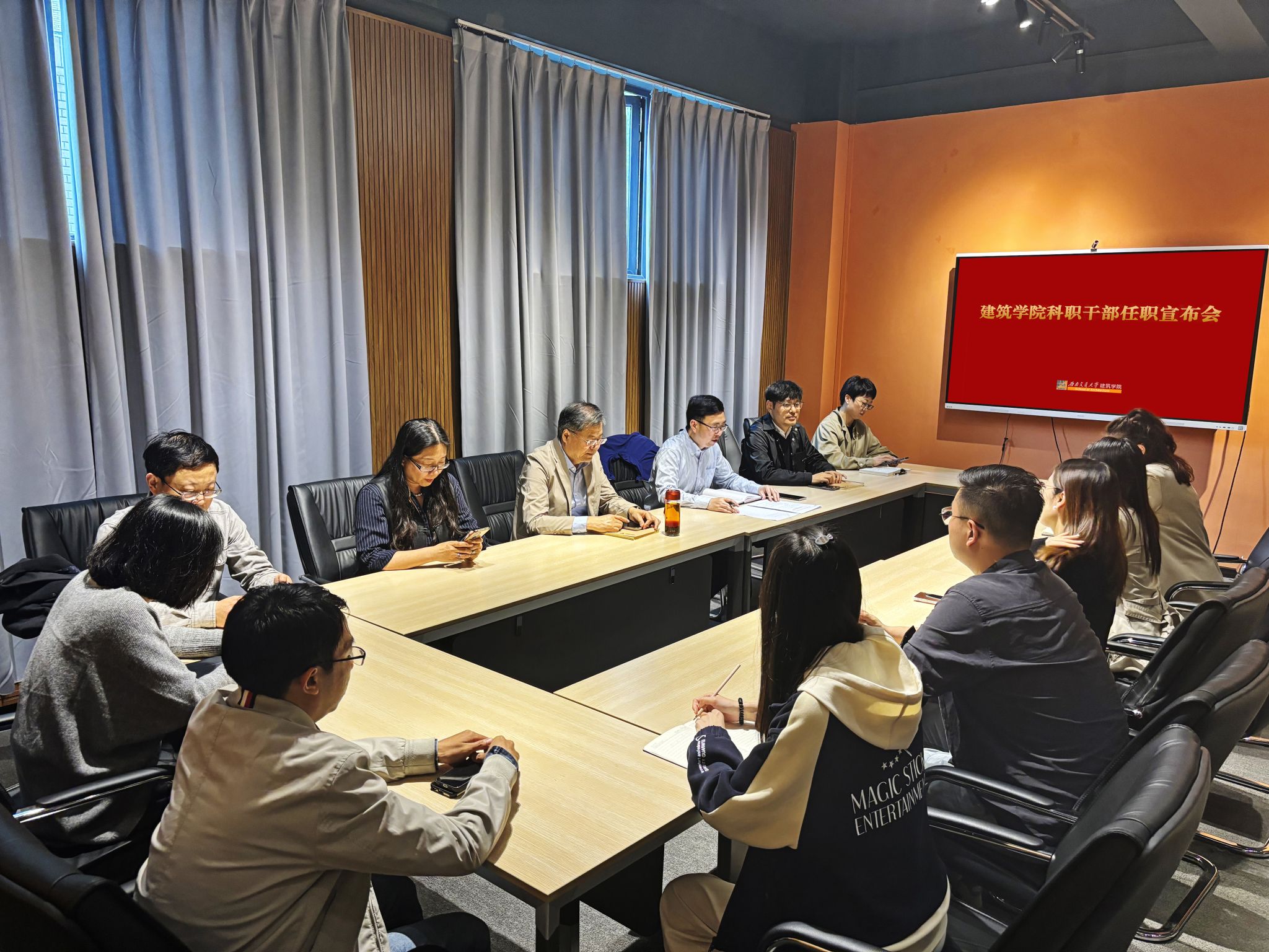 科职干部任职宣布会议在学院第一会议室顺利举行,学院党委书记胡伟,执行院长沈中伟及其他班子成员、各部门工作人员等参加会议。胡伟同志主持会议。