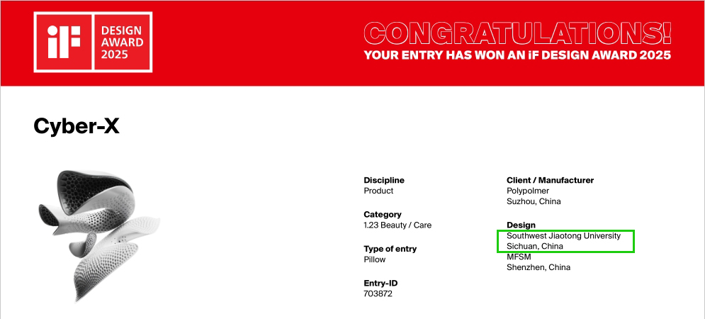 美术系主任舒兴川带领团队完成的两项设计作品——《SHIFT_Circular furniture for Low Carbon Library》(低碳图书馆循环家具)与《Cyber-X》(赛博空间系列设计),从全球66个国家/地区的近1.1万件参赛作品中成功入选。这一成绩展现了学院在艺术设计教育中的扎实积累,也为协同创新提供了国际舞台的认可。
