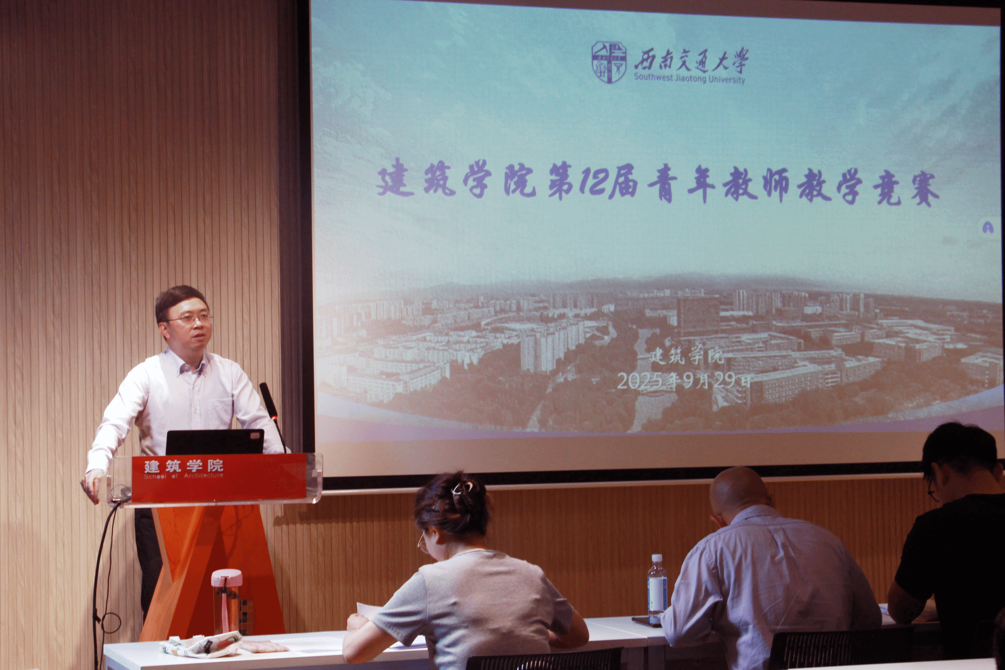 党委书记胡伟,副院长杨青娟、学院教学督导组组长崔珩、各系主任及往届青教赛获奖教师莅临赛场,参与评分和点评工作,全体新入职教师全程进行了观摩学习。