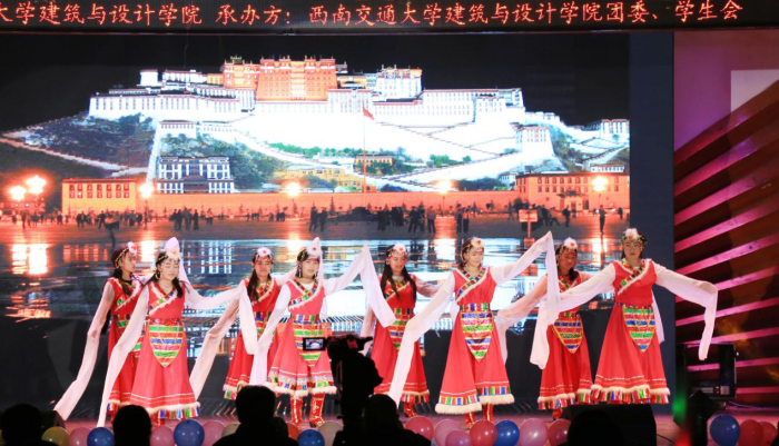 本次晚会以师生联欢为主线,打造国际份儿、民族份儿十足的联欢晚会,邀请了包括藏族同学、留学生及周斯翔老师在内的8名主持人。晚会的表演分为三个篇章:“青春·记忆篇”、“旅途·希望篇”、“民族·情意篇”。首先,园林的老师们为大家带来歌曲《成都》,熟悉的旋律迅速占领整个会场,器乐合奏《童话镇的故事》、劲歌热舞《closer》将晚会气氛推向高潮。接着是幽默风趣的话剧《大话红楼》和温柔缱绻的合唱《老男孩》和《当你老了》。在互动游戏环节里,抽奖活动让同学们激动不已。之后,城规和建筑的老师们为大家带来气势澎湃的诗朗诵。钢琴独奏《月光第三乐章》悠扬婉转、合唱《明天会更好》热情洋溢。在“民族·情意篇”中,教师合唱《我和我的祖国》、《夜空中最亮的星》、诗朗诵《沁园春》获得大家的一致好评,富有设计专业特色的服装走秀《丝侗情》展示了设计系师生们的风采,歌曲联唱《不忘初心》让人深受感动,紧接着藏大班同学们带来的藏舞《情满草原》为大家展示了别样的民族风情。最后,晚会在“橙”合唱团的压轴演出《感觉身体被掏空》和《在灿烂的阳光下》中圆满落下帷幕。