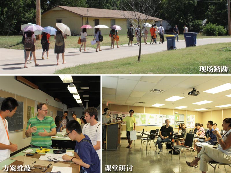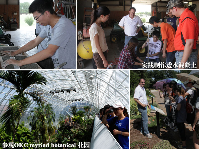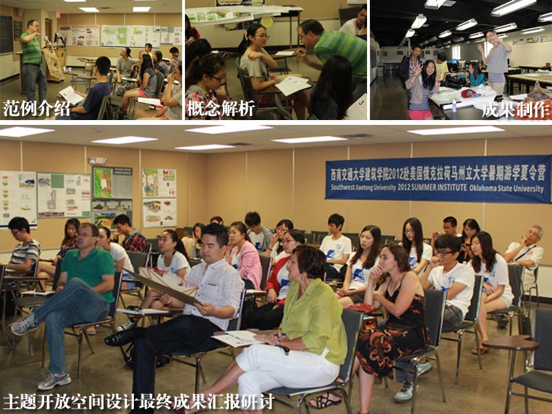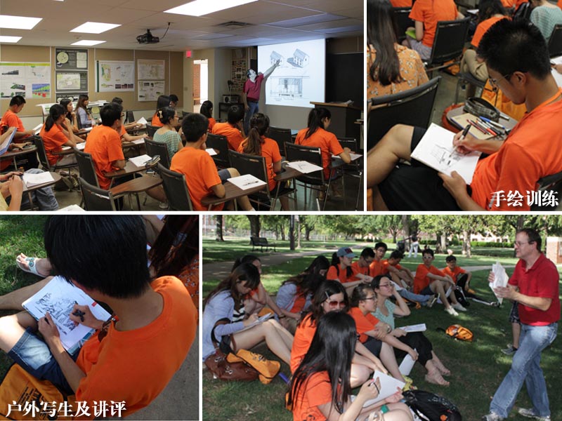 7月16日,夏令营师生抵达位于美国中部的俄克拉荷马州斯蒂尔沃德市,受到俄克拉荷马州立大学(OSU)校方的热情迎接。OSU校方对本次游学夏令营项目非常重视,项目具体承担单位——OSU农学院园艺与景观系主任Dale Maronek教授和OSU国际学生和学者办公室主任Tim Huff亲自主持开班仪式,由园艺与景观系景观专业负责人Michael Holms教授负责夏令营的设计课程,园艺和景观系Paul Hsu教授、Kim Toscano教授和建筑系Seung Ra教授等多位教师参加课程研讨和成果汇报,安排建筑系在校美方学生全程参与课程,与夏令营的中方同学开展合作交流。丰富而紧张的课程计划以设计课程为核心,专业课程包括概念拓展、结构构成训练、徒手表达训练等基本技能训练,住区低环境影响发展规划设计,主题开放性空间构成设计,生态技术示范性花园参观和透水材料车间实习等环节。
