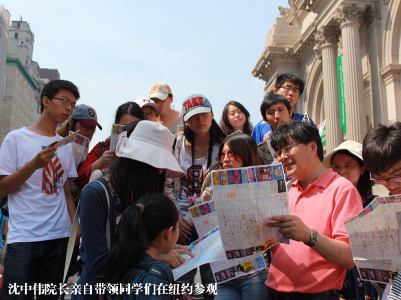 8月3日,正在美国进行学术交流的沈中伟院长,亲切慰问了夏令营全体师生,特意抽出时间,亲自带领夏令营全体师生参观了纽约中央公园、古根海姆博物馆、中央车站和大都会博物馆,为同学们现场分析讲解纽约城市空间结构、著名公共建筑和城市景观,并带领夏令营师生实地体验纽约地铁和公共交通系统。