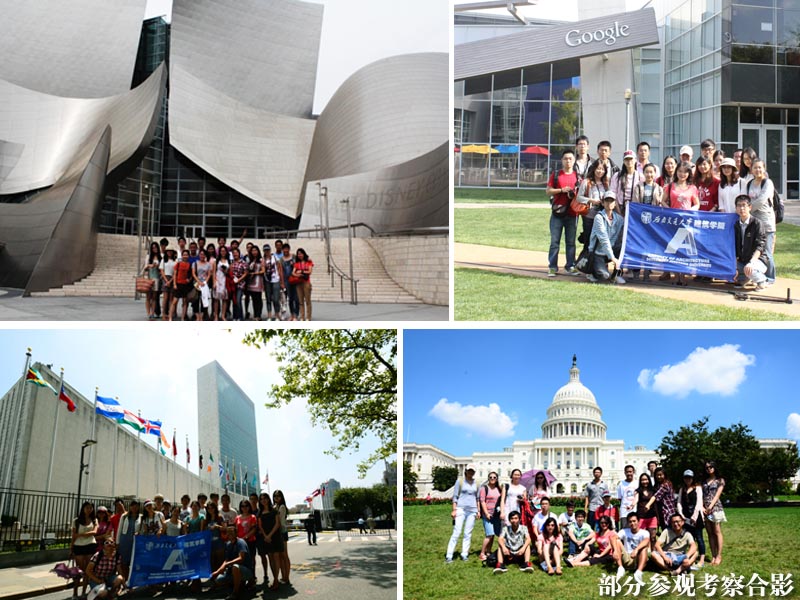 7月11日至15日,夏令营师生在美国西海岸城市洛杉矶、旧金山和拉斯维加斯参观考察。在洛杉矶期间,夏令营师生参观了洛杉矶盖利艺术中心、迪斯尼音乐厅、洛杉矶音乐厅、斯台普斯体育中心等著名公共建筑,欣赏了洛杉矶中心城、好莱坞星光大道等地的城市景观,体验了洛杉矶环球影城的电影文化。7月13日抵达旧金山后,夏令营一行访问了加州大学伯克利分校、斯坦佛大学,深入硅谷园区,参观了谷歌公司总部,在旧金山市区参观了旧金山金门大桥、九曲花街、金门公园等著名城市景观和旧金山市政厅、泛美大厦、圣母玛利亚大教堂等著名建筑。7月15日,夏令营师生抵达拉斯维加斯,在紧凑的行程中考察了该城著名的酒店建筑。