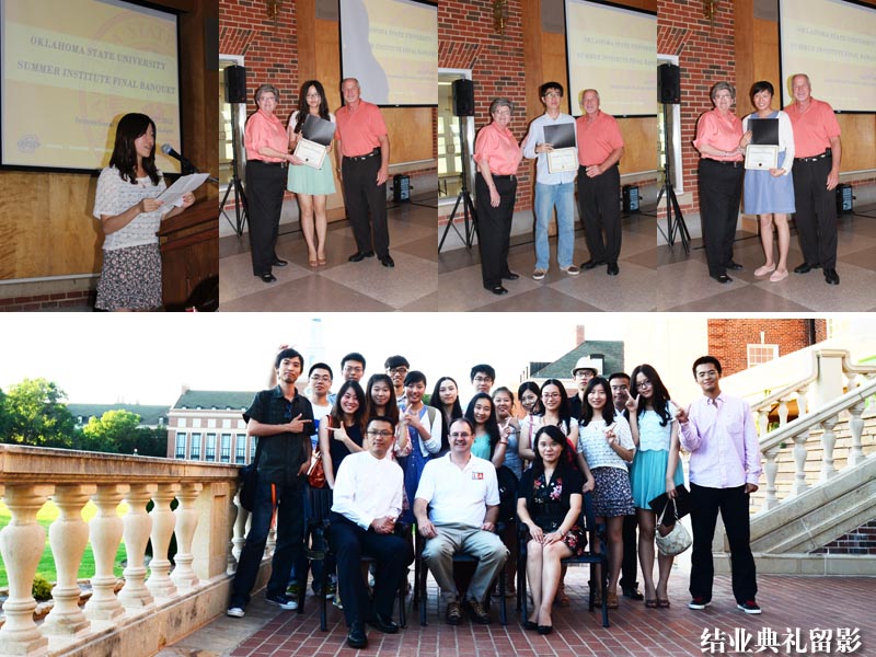 7月27日,夏令营圆满完成在OSU的课程学习和交流,与同期参与“暑期殿堂”游学夏令营项目的我校茅以升学院夏令营、北京农业大学夏令营一道,出席了OSU校方主办的结业晚宴。梁冰同学作为我院夏令营学生代表在结业典礼上致辞,OSU负责国际学生和推广的副校长David Henneberry 博士和园艺与景观系主任Dale Maronek教授为夏令营每一位同学颁发了结业证书。