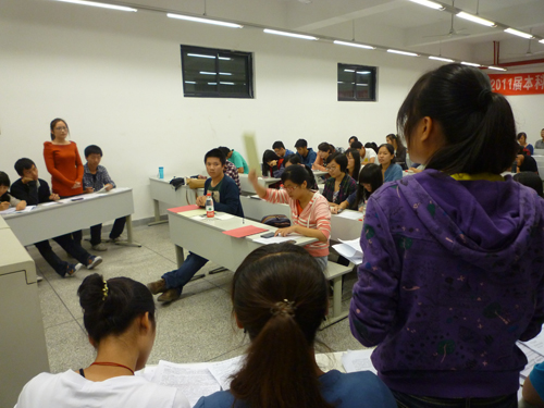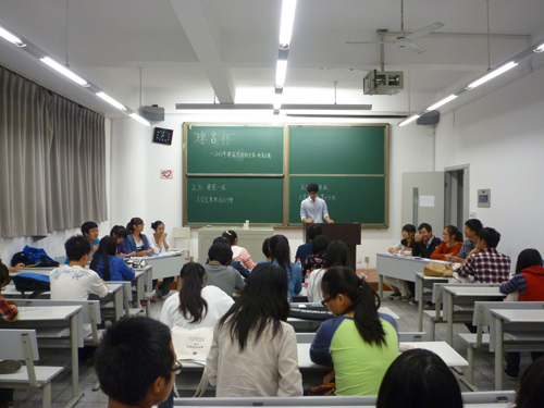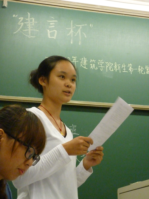 “建言杯”2012级新生辩论赛第一轮复活赛在X8527成功举行。邓邦祈、马维思、邓宇、马晨、陈佳玉以及于佳琳六位评委出席了本次辩论赛。本场比赛的辩题是“大学生兼职利大于弊还是弊大于利”。正方建筑1班持利大于弊的观点,反方景观班则认为弊大于利。经过一番激烈的角逐,此次辩论赛以正方的胜利而告终。