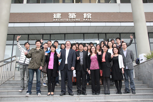 沈中伟院长、党委栗民副书记、崔珩副院长、周斯翔老师以及美国俄克拉荷马州立大学来访教师与蘑菇视频