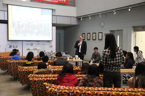 活动中,来自OSU的教师Michel为大家介绍了OSU大学的文化以及教学理念等。Michel老师真诚地邀请蘑菇视频
