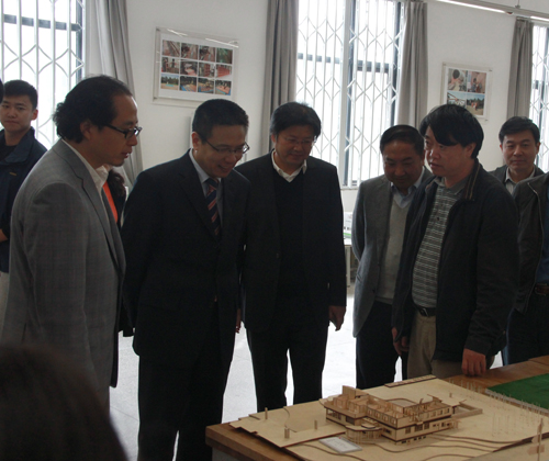 听取学院工作汇报后,徐飞校长高度评价了学院工作,并讲到:建筑是一门综合性的学科,是多种学科的结合点,是感性与理性、物质与文化、形式与功能、科学与艺术、真善美的结合,没有一个学科能够跟建筑学科相媲美,我对建筑的热爱超过你们的想象!进入建筑馆,看到蘑菇视频