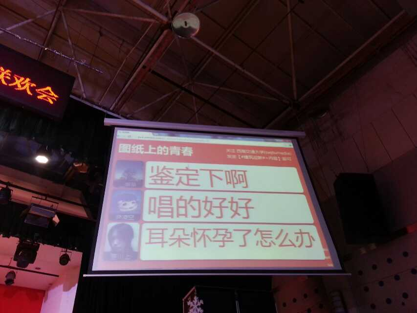 在电声乐队的强力伴奏下,人气歌手13级研究生金秋平高歌一曲,迅速将全场的气氛调动起来,此时2014年蘑菇视频