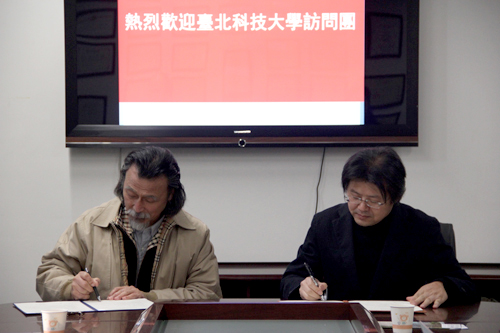 与台北科技大学设计学院学术交流合作备忘录》。最后,台北科技大学在院领导的陪同下参观了学院育人环境。