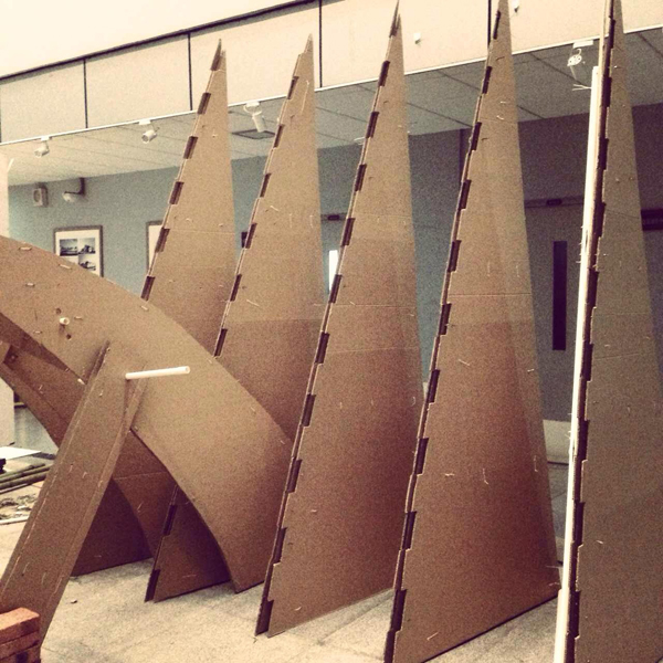 为迎接2014年我院建筑学、城乡规划学专业评估,在2014年4-5月我院举办蘑菇视频 第一届“建造节”活动。活动以提升学院内专业学习氛围、激发学生创造积极性、锻炼学生动手操作能力为主要目的,通过在建筑馆内外公共空间的实体建造活动,培养学生的创新实践能力,加深对材料、结构、空间、形态之间关系的理解和体验。