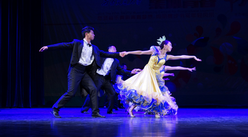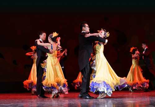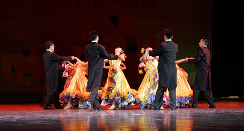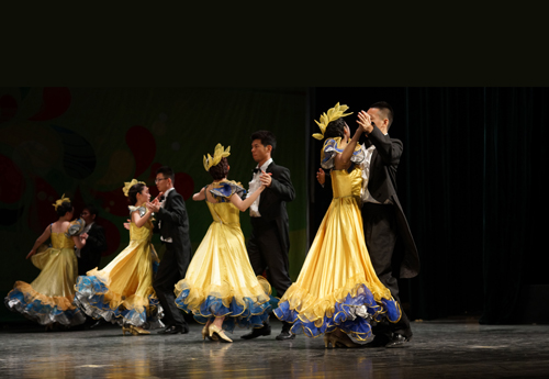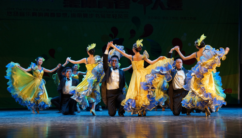 由8名男同学与8名女同学组成的代表队参赛,黄蓝相间的礼裙在灯光的映衬下显得活力十足,欢快的旋律,将整个赛场带入了活泼的气氛当中。身穿优雅礼裙的女生显得格外靓丽,穿燕尾服的男生显得绅士十足。他们在舞台上自信地向所有观众、嘉宾和评委老师展现着来自蘑菇视频
