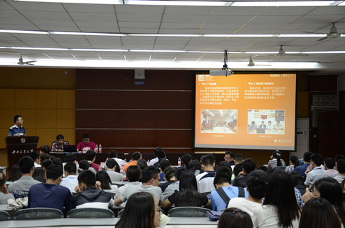 首先,杨俊涛同学从我院研究生会“服务广大学生,铸就建筑梦想”这一工作宗旨出发,为大家介绍了研会的部门组成以及严格的干部选拔、考核、培训、监督与投诉制度。接着,他向在场的观众们展示了蘑菇视频