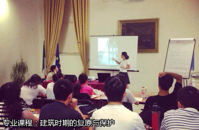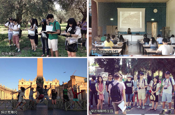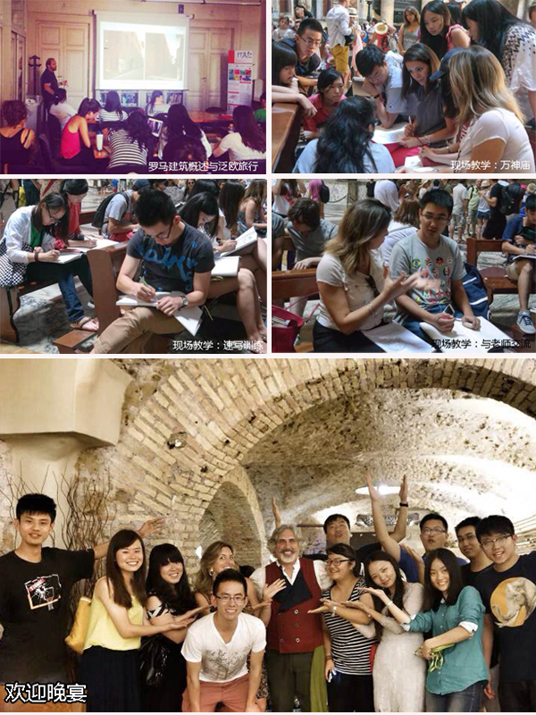 项目开展之前,双方学校就前期准备进行了深入探讨,最终确立了“现场教学和专业课程结合”的独特游学方式,由罗马建筑学会负责课程设计,多位教授参与讲授。课程主要分为专业授课和现场教学,专业授课主要针对三个方面:专业技能培训、意大利建筑史学习以及欧洲建筑设计、保护理念。现场教学则是由专业教授进行讲解,实地探访名胜古迹,现场速写,绘制分析图。除此之外,还添加了诸如参观威尼斯双年展、艺术工作室探访、企业探访等特殊项目,令同学们寓乐于学,乐在其中。