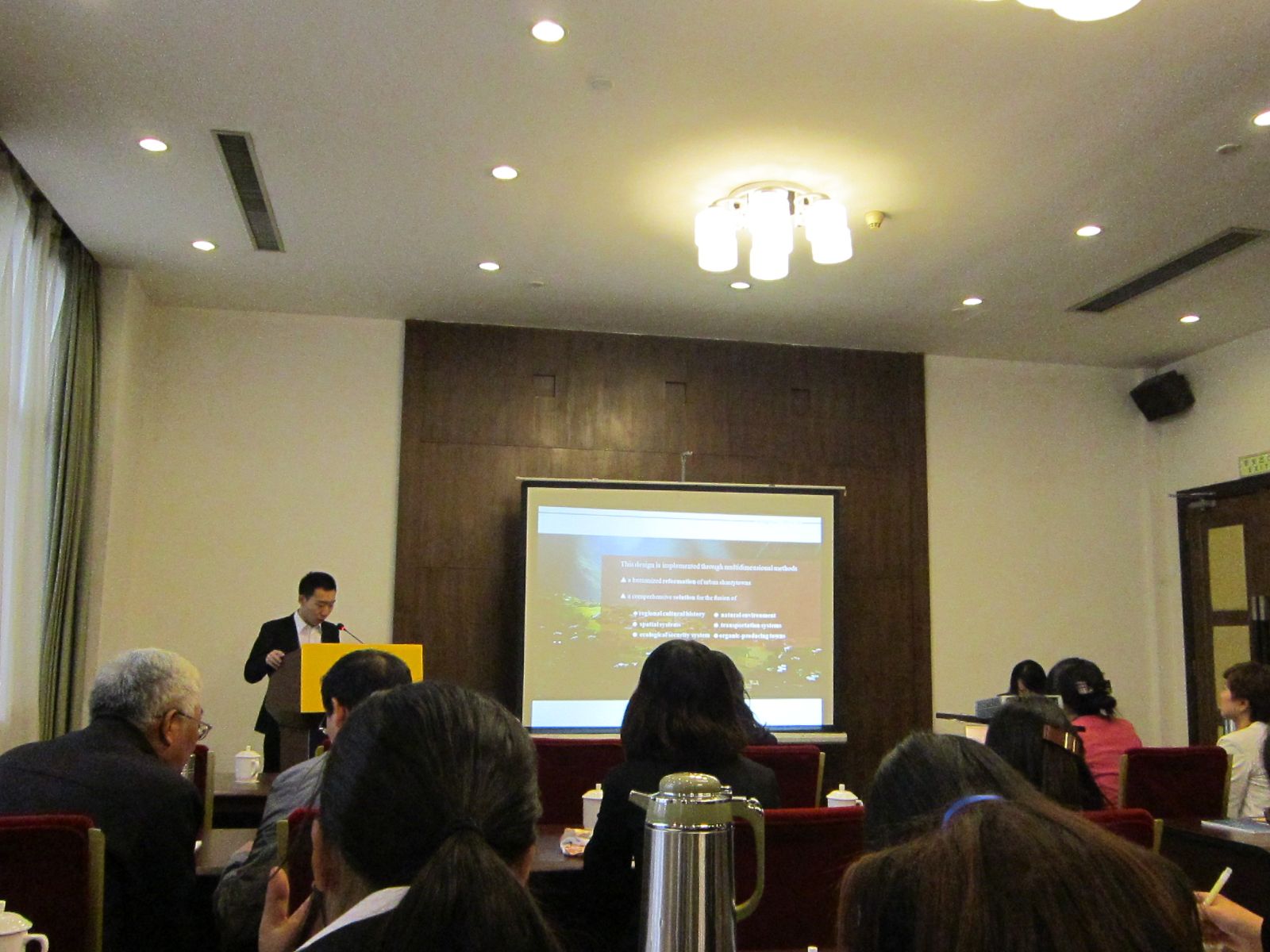 的刘澳及王慧代表进行交流,了解亚洲国家的建筑教育模式,学习建筑教育的经验,结合建筑环境空间谈到对学生的影响,同时汇报人都提到注重校园文化和建筑的融合更有利于促进搭建优质的教育平台。我院博士生牛韶婓在建筑规划和设计专题中作题为“The Practice And Exploration Of Green Railway Station In China”报告,我院优秀毕业生崔晋同学也在建筑规划和设计专题中作题为“Research Practice On The Reformation Of Urban Shantytowns Under The Background Of New Urbanization – Case Study On Planning And Architectural Design Of Xijiazhou Town In Chuanshan District, Suining City”报告。在本组主题报告人共有5名来自中国、6名来自韩国及4名来自日本,我院博士牛韶婓在会后说到:“通过本次国际交流会,开拓了国际化视野,对近年亚洲建筑领域的研究动向有了更深刻的认识。同时日本、韩国的建筑师与学者的研究思路与研究方法给我带来了很大的启发和借鉴。”