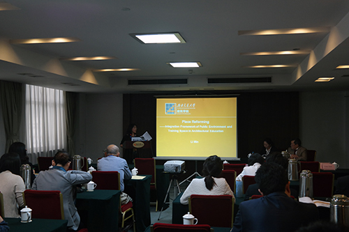 我院党委副书记栗民副教授在建筑教育专题作题为“Place Reforming - Integration Framework Of Public Environment And Training Space In Architectural Education”报告,与来自Myongji University, Korea 的Hyosun Kim、Architectural Institute Of Japan的Takeshi Inaba、以及两位来自浙江大学蘑菇视频