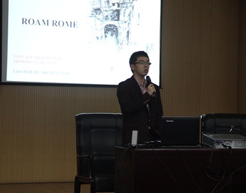 在Leo和laura详细的讲解之后,四位参加过意大利访学项目的同学向大家一一分享了自己的体会和心得,在万神庙的写生使他们了解了这座伟大建筑的结构构成,在罗马斗兽场的参观使他们了解到罗马的历史对于建筑的影响,威尼斯双年展的学习也让他们对于建筑发展潮流有了体会……虽然只有短短十几天,但是廖培然同学说“即使已经过去了一段时间,但是这些美好的经历依然历历在目,这是永远难忘的一次国外学习体验。”