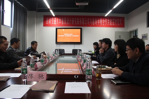 沈中伟院长、交大设计院赵世春总经理及刘文日副总经理分别代表各单位和部门做了简要讲话,阐明了双方合作建设教学实践基地的期盼和愿望,并为进一步开展深度合作描绘出了美好的蓝图。最后,沈中伟院长、赵世春总经理分别代表双方在协议书上正式签字,并赠予教学实践基地挂牌。仪式在与会人员的掌声中圆满结束,也拉开了双方友好合作的序幕。