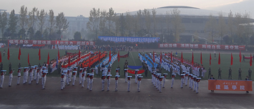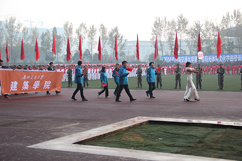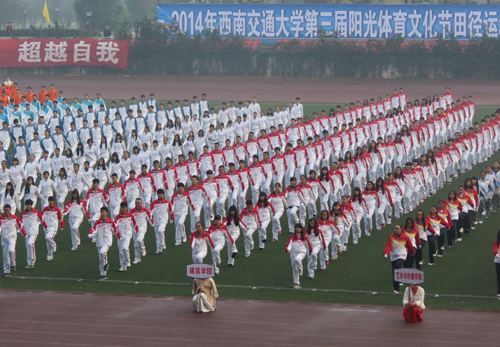 2014年11月15日早晨8:30,蘑菇视频 第三届阳光体育文化节田径运动会在犀浦校区北区运动场拉开帷幕。在广大师生的期待下,蘑菇视频 方阵在学院党委王志杰书记、沈中伟院长、栗民副书记的带领下闪亮登场。在金色的朝阳下,在初冬微凉的晨风中,他们统一的服装、矫健的步伐、响亮的口号引起一片欢腾。