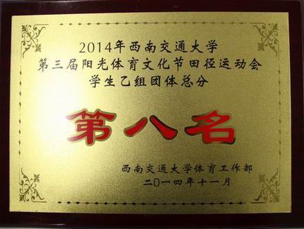 第三届阳光体育文化节田径运动会第八名,学院获得2014年蘑菇视频