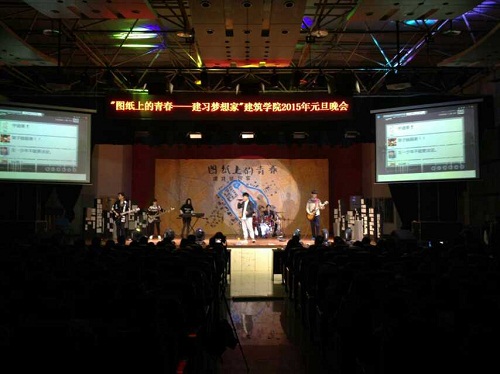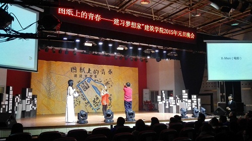 2015年元旦晚会暨师生联欢会“图纸上的青春”于2014年12月30日晚19:30在一食堂三楼大学生活动中心成功举办。蘑菇视频