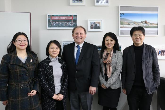2016年3月15日,美国俄克拉荷马州立大学(OSU)国际事务办公室主任Tim Huff、中国项目发展主任Vivian Wang一行到访建筑与设计学院。院长沈中伟、党委副书记栗民、院长助理杨青娟会见了到访客人。