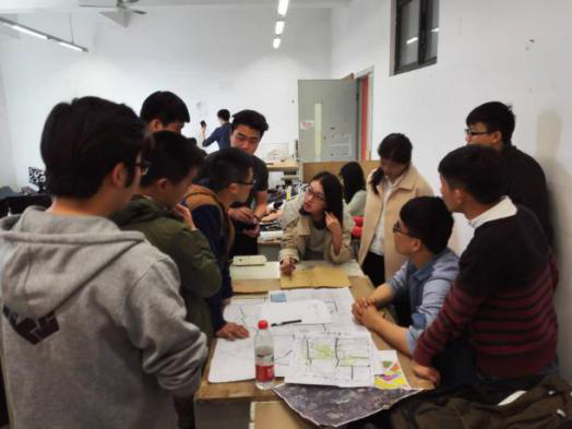 汇报中,各小组同学分别从规划、景观和建筑三个角度进行方案的阐释,采用了定性、定量分析相结合的方法,通过二维图示和三维模型对现阶段的成果进行全方位、立体展示,部分小组还制作了视频展示,同时各小组考虑到方案结合实际,就经济性和实用性相兼顾的问题对方案的可行性进行了评价。