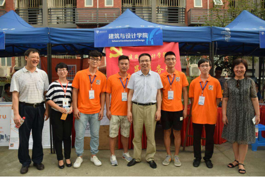 8月23日早上5点,天光微蒙,虹桥的灯光还未熄灭,建筑与设计学院的迎新志愿者已经开始布置迎新场地,有条不紊地准备迎新。7点15分,学院迎来第一位新生,意味着我院迎新工作正式开始。