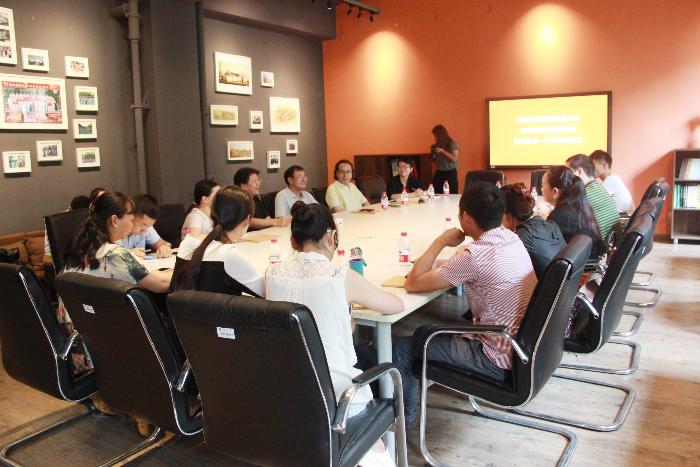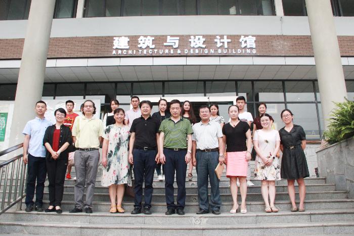 招生就业处处长谭建鑫、国际创新创业学院办公室主任曹瑶瑶、建筑与设计学院院长沈中伟、副院长李异、党委副书记刘一杰以及学生工作处的老师们就建筑类创新创业工作在建筑馆建筑文化中心会谈、调研。