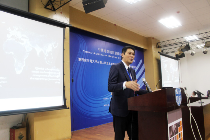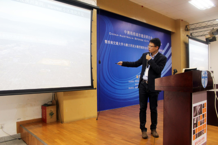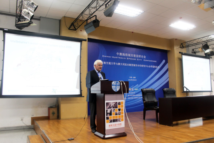 建筑与设计学院顺利举行。维多利亚州环境保护署主席 Cheryl Batagol女士、澳大利亚工程院院士Tony Wong教授等数位澳大利亚知名专家学者以及来自中国西南建筑设计研究院有限公司、四川省建筑设计研究院、成都府南河管理处、中维国际设计有限公司、重庆顾地、丹华水利环境技术有限公司等四川地区相关领域的重要设计、建设及管理机构共200余人参加了本次研讨会。