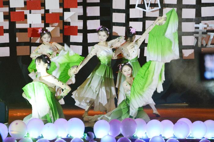 在主持人激情澎湃的致辞之后,晚会正式开始。华丽炫目的舞台、五彩缤纷的灯光、逗趣幽默的微信互动墙使同学们情绪高涨。开场是由建筑与设计学院“橙”合唱团带来的合唱《熬夜小夜曲》,词曲均由合唱团完全原创,生动有趣的歌词形象地道出了大家的心声,与高亢优美的美声唱法形成强烈反差,带来无尽震撼的同时引起了建院同学们的共鸣。紧接着是文艺部舞蹈社带来的舞蹈《快乐世界》,跳跃的灯光伴着欢快的节奏,将晚会气氛推向高潮。随着妙趣横生的话剧《奇妙画廊》、感人至深的歌舞剧《回忆青春》和余韵绕梁的歌曲混编《faded》。在晚会互动游戏环节,同学们积极参与,欢声笑语溢满了整个会场。LT创意手作社团独唱的《南方姑娘》和《九月》获得大家的一致好评,话剧《白蛇新传》把同学们逗得前仰后合,诗朗诵《穿越成都》带领大家领略了天府之城的无边风月,情景剧《三重门》采用了皮影戏的方式,奇妙新颖、震撼人心,文艺部舞蹈社的成员们轻歌曼舞一出《出水莲》,将晚会带入尾声。接着是压轴嘉宾朱雅琪带来的独唱《我要我们在一起》和《江山》,嘹亮的嗓音、昂扬的歌声点燃了每一位同学,台下掌声雷动,尖叫声一浪接着一浪。晚会在“橙”合唱团响遏行云的合唱《中国军魂》中完满落下帷幕。