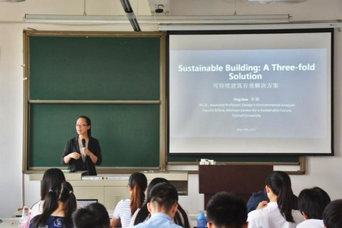 下午,在李路副教授主持下,华颖以“可持续建筑概论和有效解决方案”为题,为学院师生做了精彩的学术讲座。她首先就“绿色建筑”概念的不同理解进行阐述,并详细讲解了可持续建筑设计的有效解决方案,包括建筑功能需求的减少、高效率的系统、可再生能源的使用。在跨学科设计和结果导向方面,华颖有着自己的思考:绿色建筑设计应不止关注设计意图,更要关注设计达成的目标。