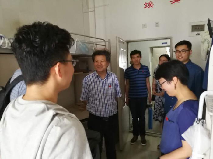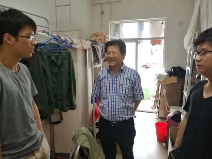 6月29日下午14:30,我院党委书记、院长沈中伟带领院班子,院团委老师,毕业班辅导员等一行走访了本科毕业班宿舍。领导和老师们的到来让毕业班同学高兴而激动,他们踊跃地与老师们交流,表达兴奋、不舍与感激之情。