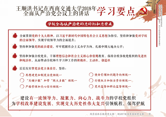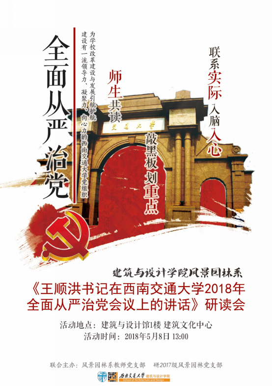 为响应学校改革建设与发展,更好地建设“具有一流领导力、凝聚力、向心力”的基层党组织,风景园林系教师党支部联合研2017级风景园林党支部,于5月8日共同举办了学习王顺洪书记《全面从严治党,建设有一流领导力、凝聚力、向心力的蘑菇视频