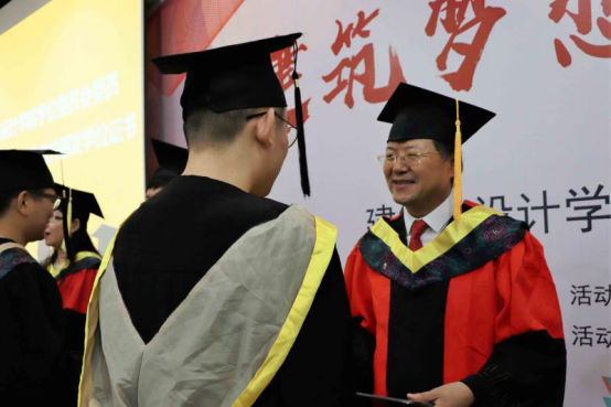 优秀毕业生称号学生名单》。建筑与设计学院学位评定分委员会委员为硕士学位获得者和学士学位获得者集中拔穗、授予学位并颁发学位证书。多位老师为优秀毕业生作品的作者颁发收藏证书。