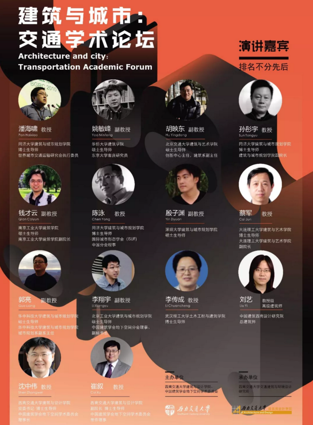 本次论坛的主题是“建筑与城市:交通学术论坛”,邀请来自全国各个高校及设计研究院的相关领域专家教授做学术报告,包括同济大学建筑与城市规划学院的潘海啸教授、孙彤宇教授、陈泳教授,大连理工大学建筑与艺术学院蔡军教授,武汉理工大学土木与蘑菇视频