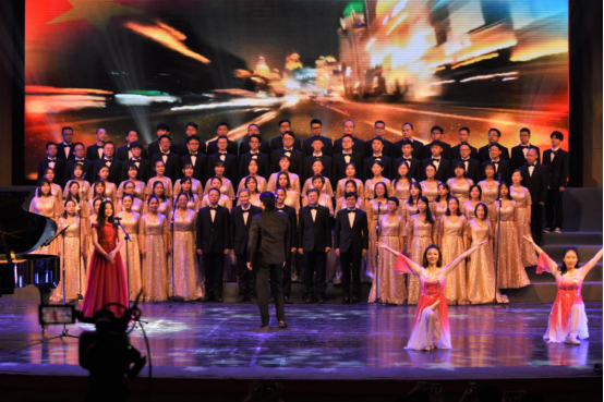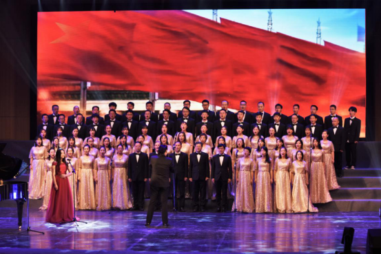 合唱团表演一曲《走进新时代》,歌声铿锵有力,抒发着学院师生对伟大祖国的热爱,《走进新时代》旋律动人正气、歌词真挚朴实,充满爱国主义精神,歌颂了中国人民勤劳勇敢和无限智慧,表达了对国家和中国共产党的爱戴和崇敬之情。