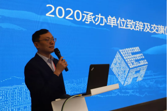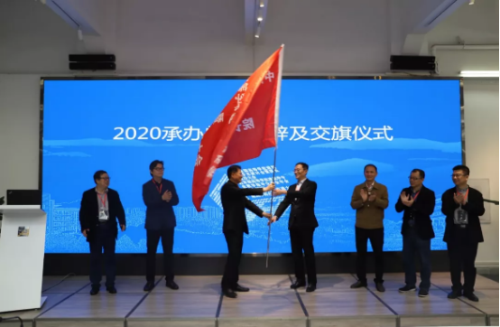 建筑与设计学院执行院长沈中伟教授将大会会旗传递给2020届大会承办单位代表哈尔滨工业大学蘑菇视频