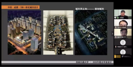 史劲松老师从城市问题和城市理想切入,以PPT、视频、CAD等多样展现形式对此次联合毕设的题目进行了解读,很大程度上弥补了学生无法前往地段现场的缺憾。史老师还讲解了联合教学的方式方法与现有成果,同时对同学们开展毕业设计提出了几点要求并强调了时间安排。