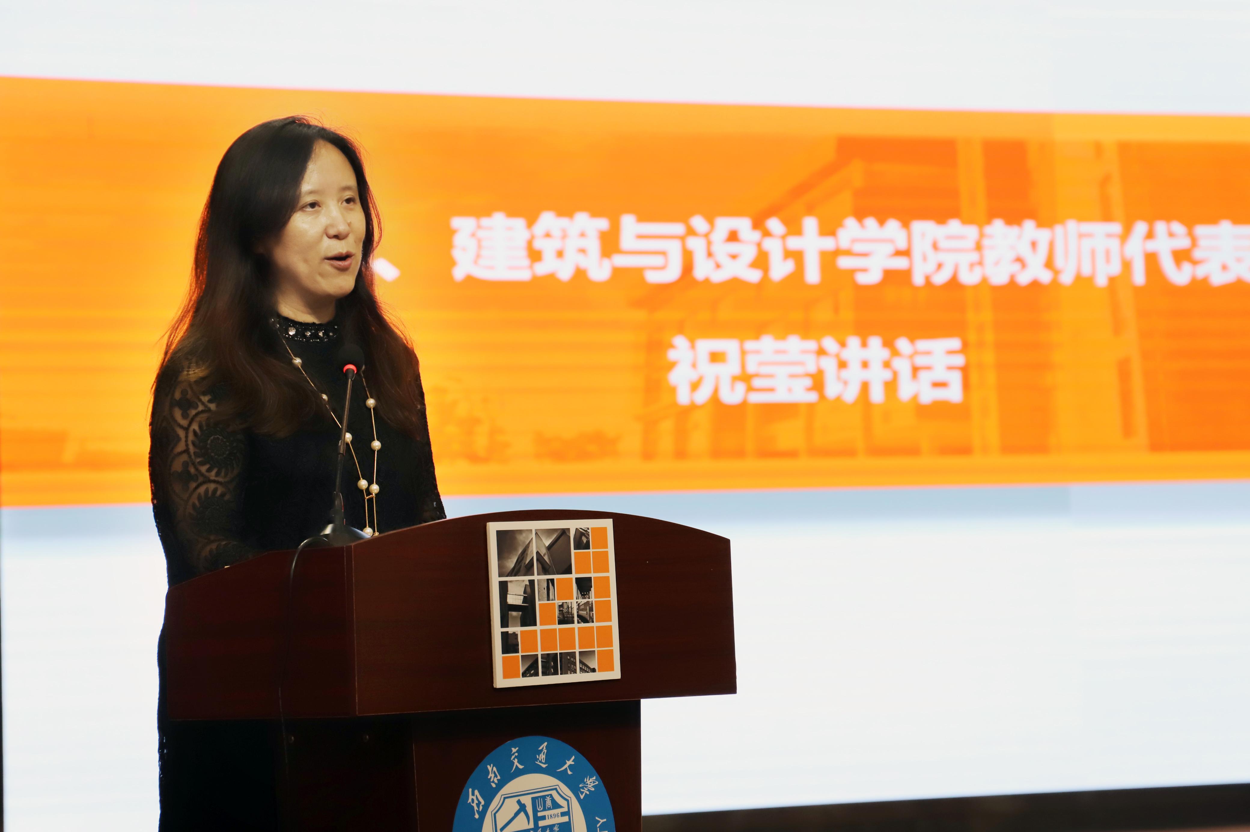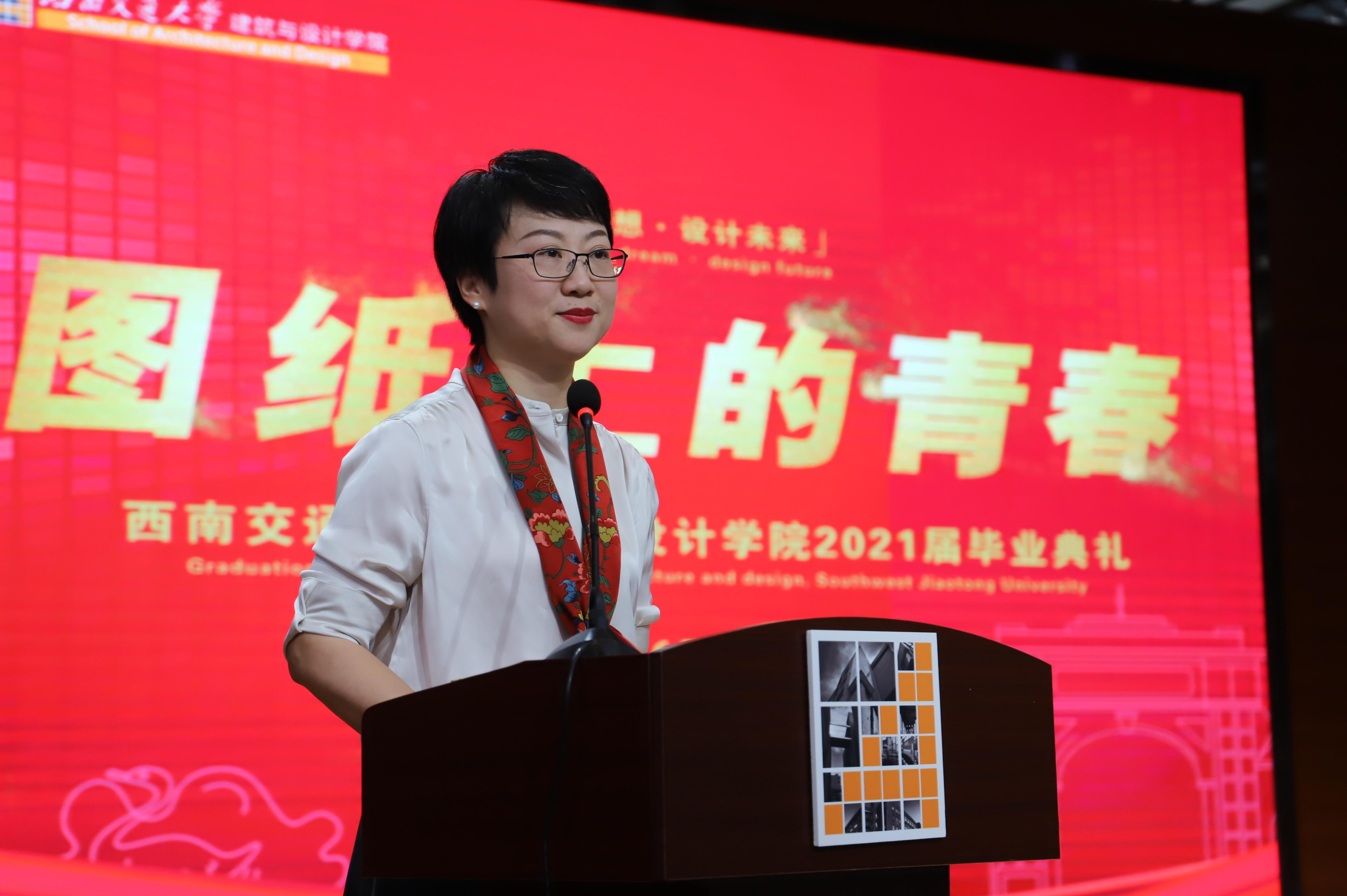 建筑与设计学院教师代表、2016级建筑学1班班导师祝莹副教授进行了发言,为毕业生送上祝福。她希望同学们确定自己的人生目标,坚信前路有光,未来熠熠生辉、捷报频传。