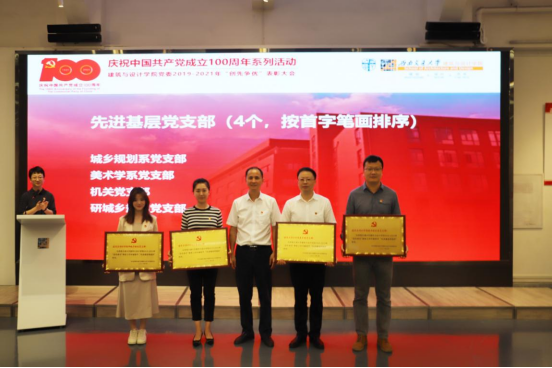 建筑与设计学院党委2019-2021年“创先争优”表彰大会在八号教学楼学校美术馆成功举办。建筑与设计学院党委委员、各支部书记、党员代表及受表彰党员同志出席了大会,表彰大会由党委副书记刘一杰主持。