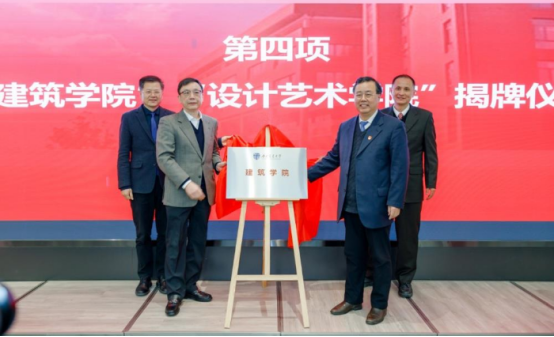 王顺洪、杨丹、艺术设计学院院长林家阳、学院党委书记闵光辉、执行院长支锦亦为设计艺术学院揭牌。