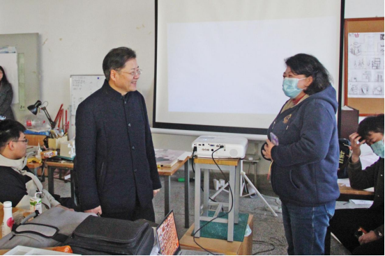 走访中,沈中伟院长与学生进行亲切的交谈,向任课老师询问新学期的教学计划并提出建议,并向师生表达了“尽快进入新学期学习状态,踏上新学期征程”的美好祝愿。吴晓雄书记对教师授课、学生出勤、教学秩序等情况进行了重点检查,特别强调安全隐患的防备工作和疫情防控工作,并向师生送上新学期的问候。