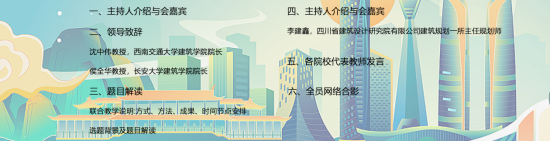 院长侯全华教授先后致辞。首先,沈中伟院长回顾了加入西部九校建筑类专业教学联盟的初衷,肯定了教学联盟“多方参与、多学科交叉,用跨学科、多角度的思维解决问题”的理念,并希望同学们能在跨学科交流学习中充分发挥各专业所长,提出具有创造力、实验性的解决方案。紧接着,侯全华院长对本次联合毕业设计竞赛的选题表达了赞赏,青年是城市的未来,也是城市发展的主力军,要让城市对青年发展更友好,切实解决青年面对的困境,提升青年的获得感,促进青年对城市的发展,并表明了教学联盟“交流、开放、共享”协同教育的教学理念,希望通过联合毕业设计,进一步推动各院校的学术交流和教学模式的创新发展。然后,蘑菇视频