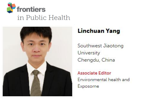 近期,我院特聘研究员、博士生导师杨林川受邀担任国际《Frontiers in Public Health》副主编,负责处理部分“环境健康与暴露”(Environmental health and Exposome)的文章。《Frontiers in Public Health》(//www.frontiersin.org/journals/public-health)是JCR 1区SSCI + SCI刊物,2020年影响因子3.709。
