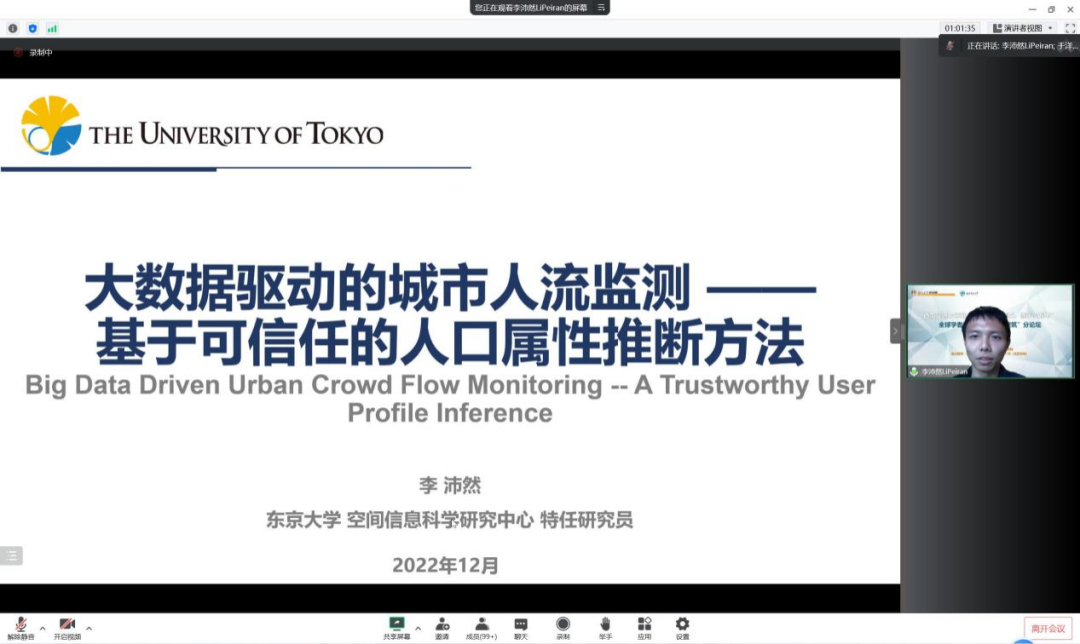 来自日本东京大学的李沛然博士报告主题是《大数据驱动的城市人流监测—一种可信任的人口属性推断方法》,李沛然博士基于当下大数据时代介绍了一种基于可信任的人口属性推断方法,此方法既可以减少普通群众对于隐私泄露的担忧,也可满足当下运用信息技术服务城市治理的需求。同时还提出了未来展望,主要集中在支持技术研究、城市应用研究两方面。